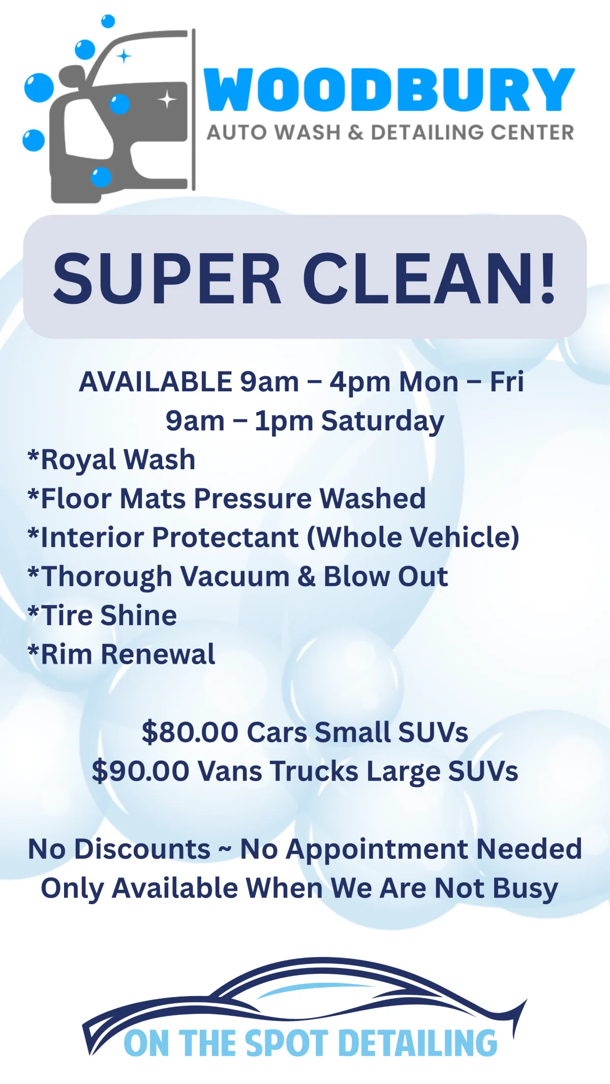 Full Service Car Wash includes first and second row vacuum, interior wipe down and windows cleaned